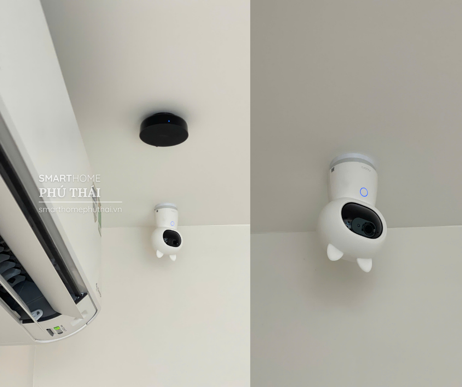 Camera thông minh tích hợp AI cũng được lắp đặt trong căn hộ nhằm tăng cường khả năng giám sát và đảm bảo an ninh. Camera có khả năng nhận diện chuyển động, gửi thông báo về điện thoại khi phát hiện hoạt động bất thường và cho phép gia chủ theo dõi hình ảnh từ xa thông qua ứng dụng. Việc tích hợp camera AI vào hệ thống nhà thông minh Aqara giúp gia chủ an tâm hơn khi quản lý căn hộ của mình, ngay cả khi không có mặt tại nhà.